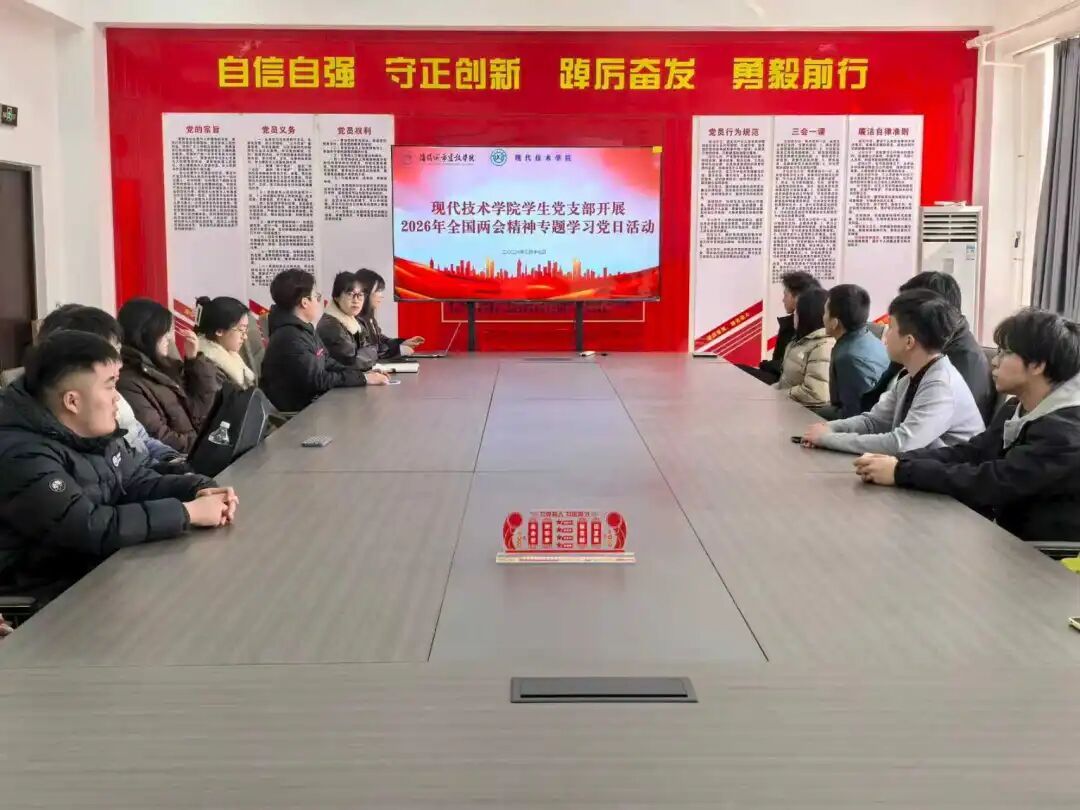 为深入学习贯彻2026年全国两会精神,引导广大师生党员准确把握国家发展脉搏,将思想和行动统一到党和国家的决策部署上来,3月17日,现代技术学院学生党支部在业精楼D510会议室举办“凝聚奋进力量 勇担时代使命”2026年全国两会精神专题学习党日活动。支部全体学生党员、发展对象及入党积极分子代表参加活动。