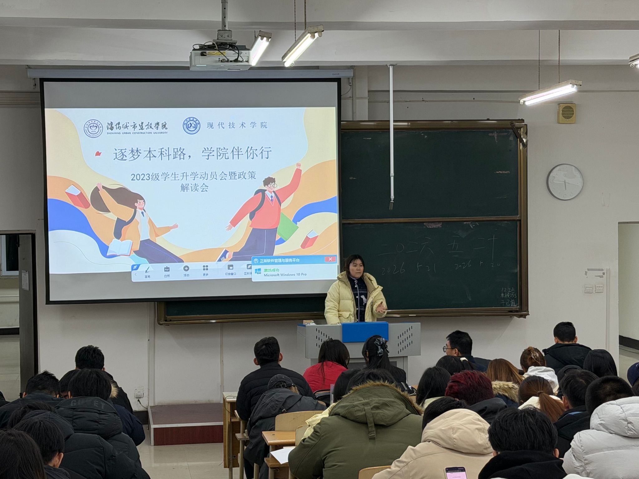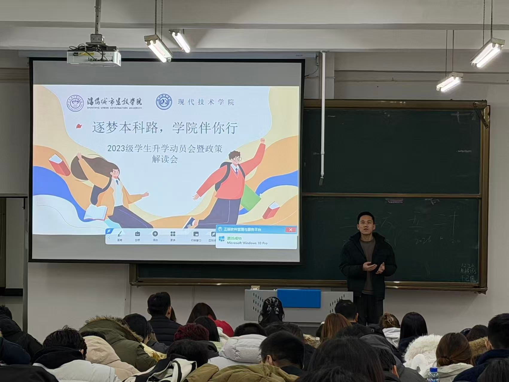 为帮助毕业生明晰专升本升学方向,破解备考难题,增强升学信心,切实为学生成长成才保驾护航,近期,现代技术学院以“逐梦本科路,学院伴你行”为主题,连续开展4期专升本升学动员会。活动特别邀请学校专升本报考指导服务专家组成员、招生办公室副主任王新阳为学生们深度解析升学政策。学院院长苑泽锴、党总支书记、副院长朱帅出席了会议,全体辅导员参加了会议,2026届全体毕业生分场次参会。