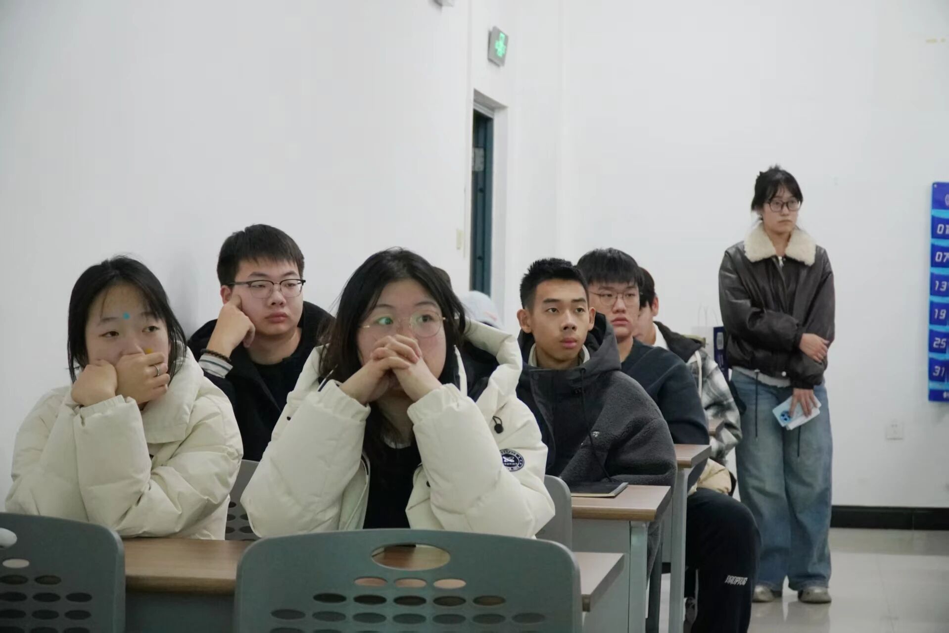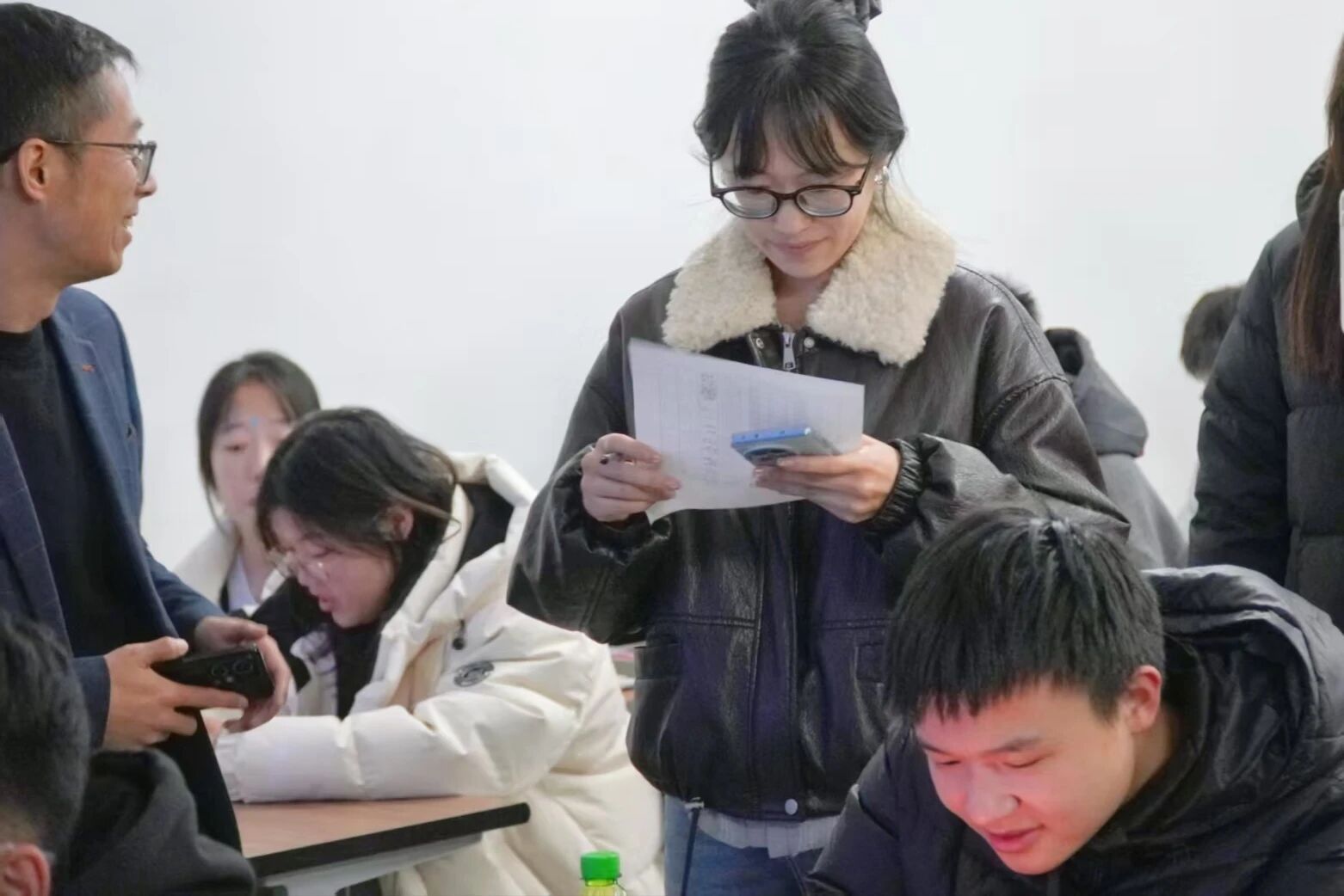 值得关注的是,辅导员团队以"同行者"身份全程参与课堂,坐在学生中间认真记录授课重点,实时观察学生听课状态与互动反馈。课间休息时,辅导员们主动与学生一对一交流,细致询问课程适配度、备考困惑及个性化需求,同时结合往届升本成功案例,鼓励学生树立坚定信心、保持恒心毅力,充分利用学院搭建的优质辅导资源,将升本梦想转化为脚踏实地的学习行动。