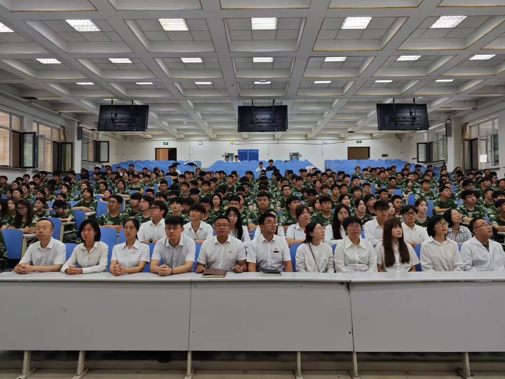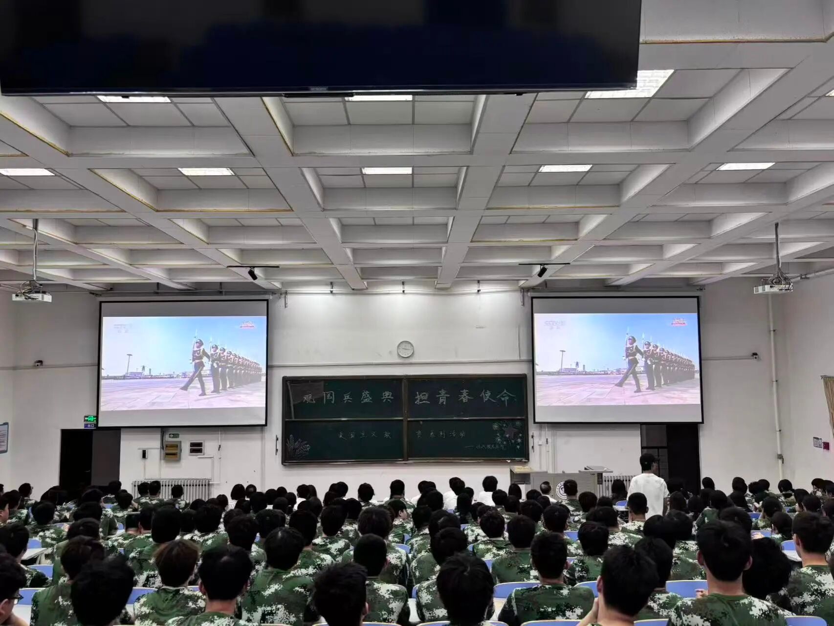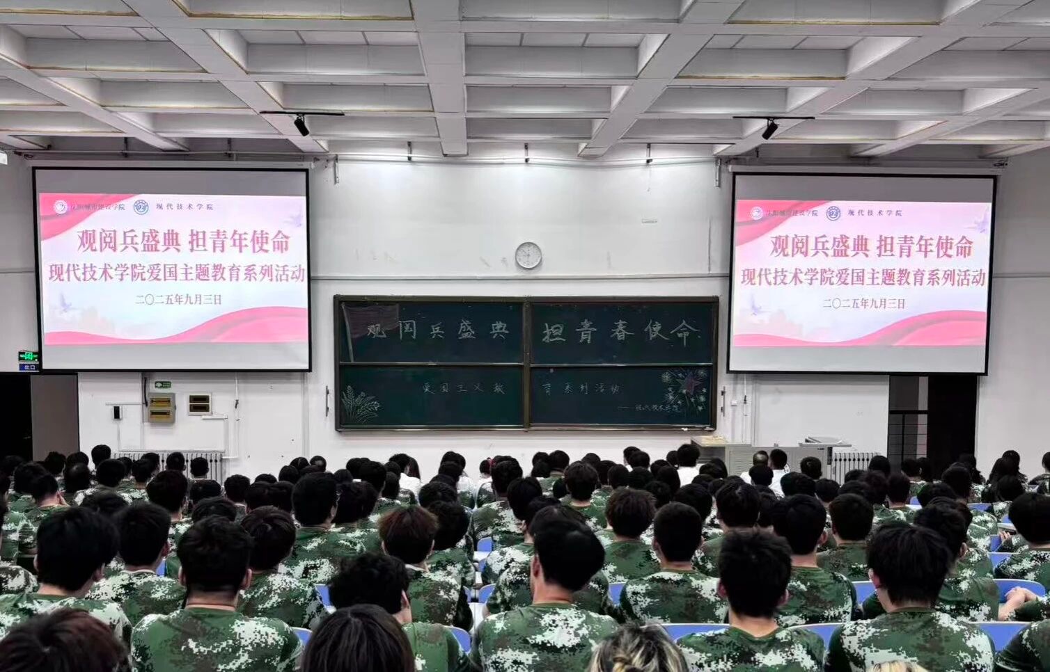 在这个具有特殊历史意义的日子里,现代技术学院党总支组织师生在业精楼礼堂隆重集会,共同观看纪念中国人民抗日战争暨世界反法西斯战争胜利80周年大会现场直播。院长苑泽锴,党总支书记、副院长朱帅,副院长魏海波,团委书记、学工办主任孟庆勇及全体教职工与学生们静坐屏前,共同见证这一振奋人心、激荡民族自豪感的历史时刻,整个活动现场庄严肃穆,秩序井然,展现出现代技术学院师生良好的精神风貌。