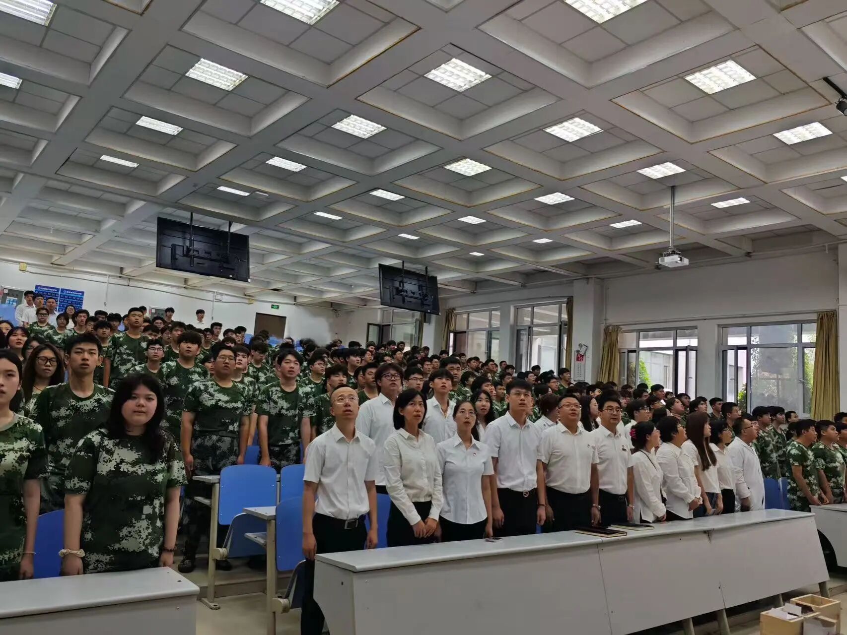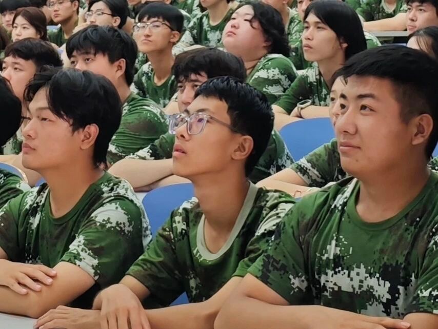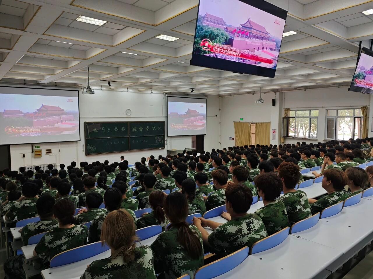 在这个具有特殊历史意义的日子里,现代技术学院党总支组织师生在业精楼礼堂隆重集会,共同观看纪念中国人民抗日战争暨世界反法西斯战争胜利80周年大会现场直播。院长苑泽锴,党总支书记、副院长朱帅,副院长魏海波,团委书记、学工办主任孟庆勇及全体教职工与学生们静坐屏前,共同见证这一振奋人心、激荡民族自豪感的历史时刻,整个活动现场庄严肃穆,秩序井然,展现出现代技术学院师生良好的精神风貌。