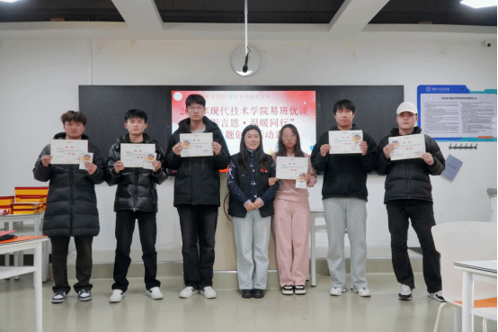 表彰会上,现代技术学院易班学生分站指导老师牟婷婷简要回顾了活动组织与评选过程,并宣读了表彰决定。本次共评选出一、二、三等奖60人,所有获奖同学均获得由学院颁发的荣誉证书及定制的学校文创冰箱贴。手捧证书与奖品,同学们的脸上洋溢着自豪与喜悦。这份认可不仅是对其创作能力的肯定,更是对那一份善于发现、乐于感恩的态度的鼓励。