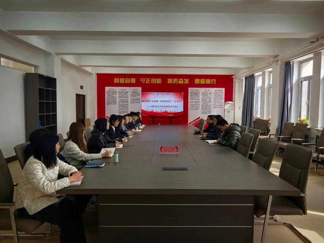 为深入贯彻落实2026年全国两会关于教育工作和师德师风建设的最新部署及辽宁省关于师德师风相关专项行动要求,以及学校关于师德师风建设的工作要求,3月13日,现代技术学院在业精楼D510会议室开展以“践行教育家精神 争做新时代践行‘大先生’”为主题的师德师风再学习再培训。现代技术学院全体教师参加会议